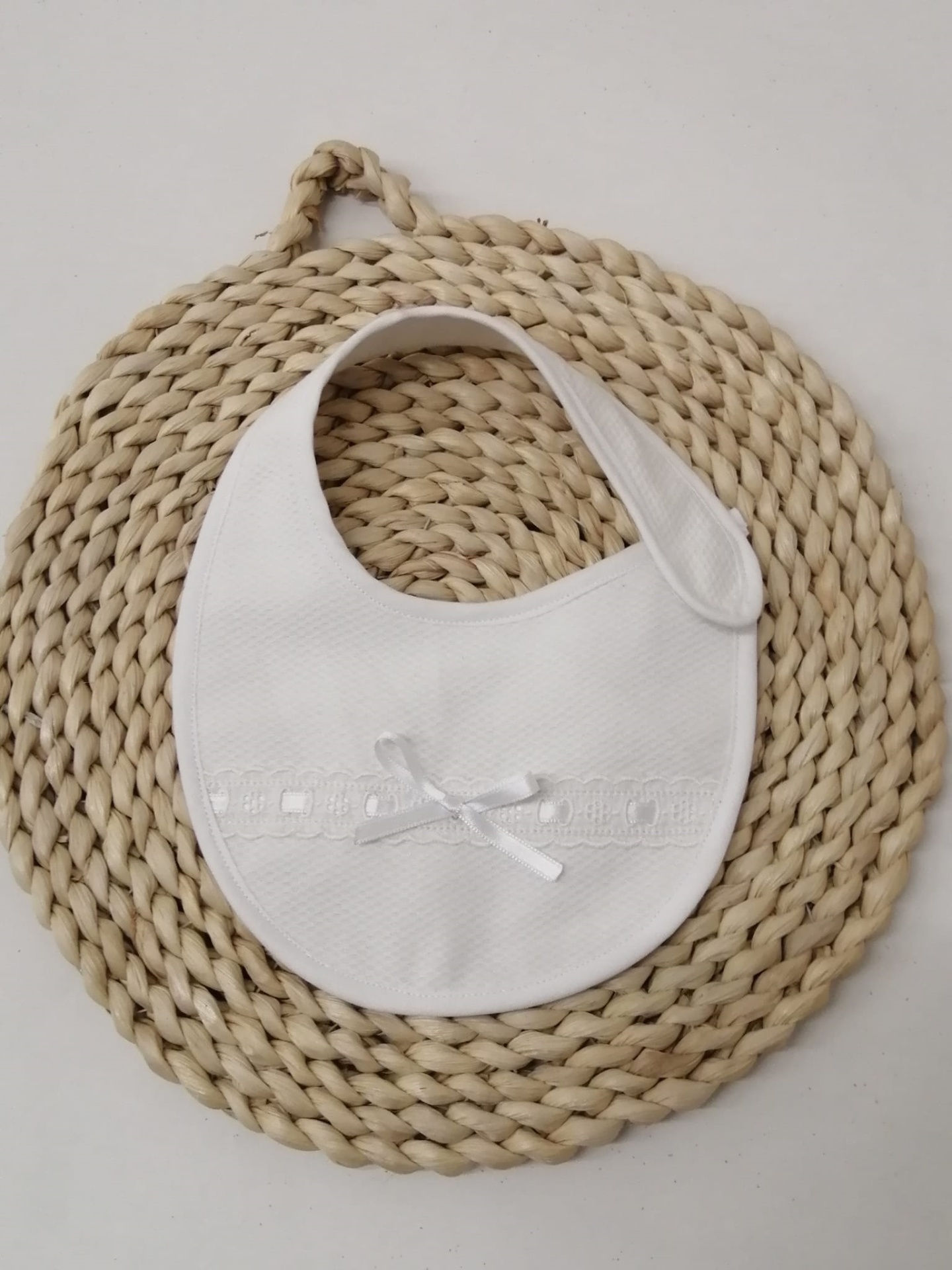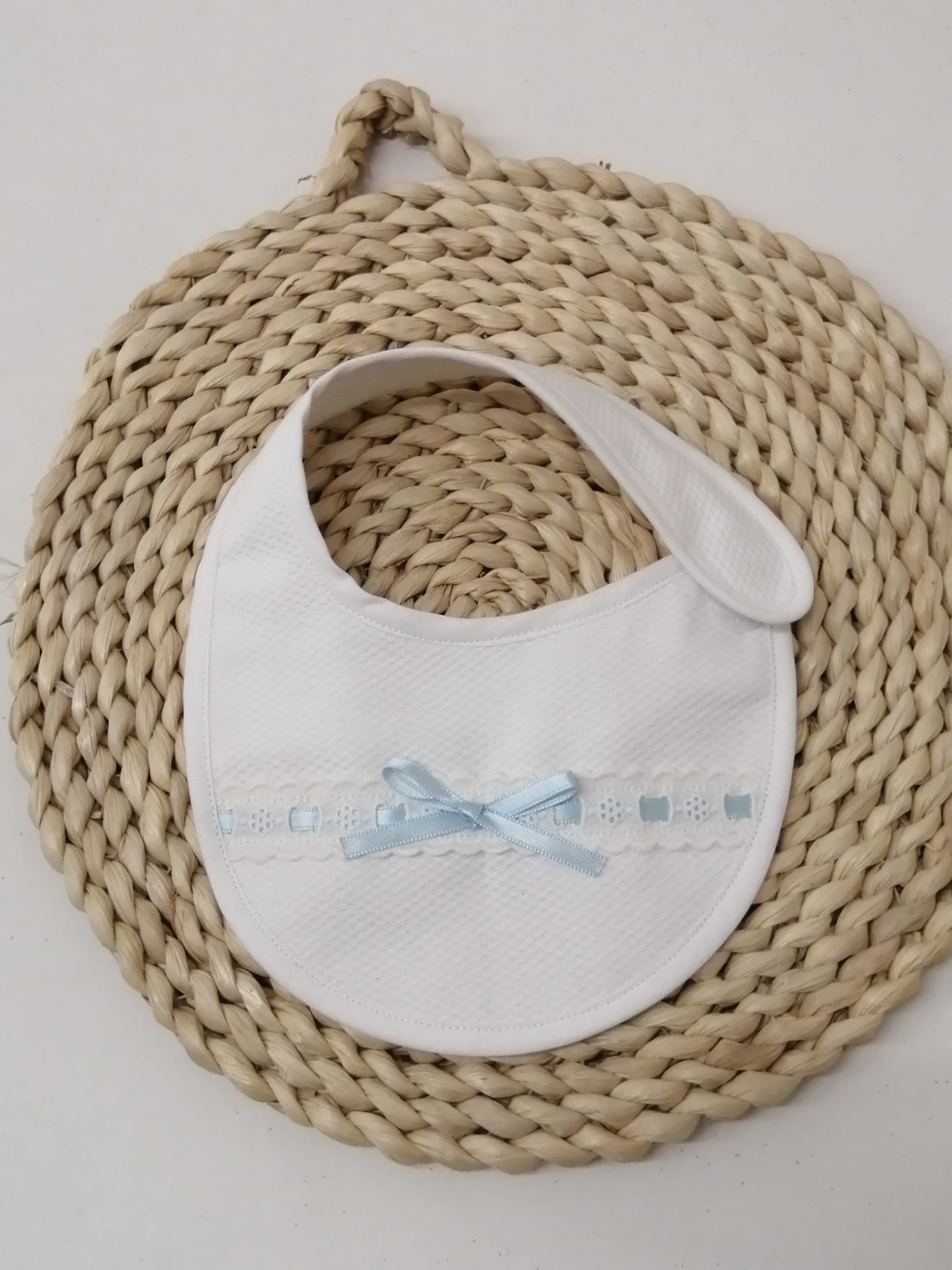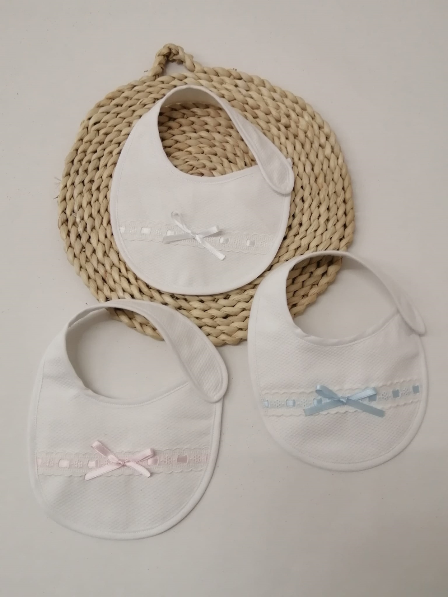 BABETE ATAR LADO 8,50 € Desconto de %. Partilhar COR FITA ROSA FITA BRANCA FITA AZUL Comprar Contactar Babete atar lado , com bordado inglês e fita de cetim . Interior impermeável . 100% Algodão
