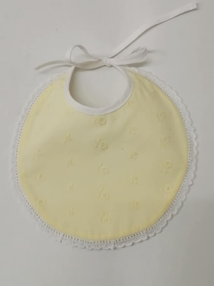 BABETE BORDADO INGLÊS 7,50 € Desconto de %. Partilhar COR AMARELO AZUL Comprar Contactar Babete bordado inglês . Com interior impermeável