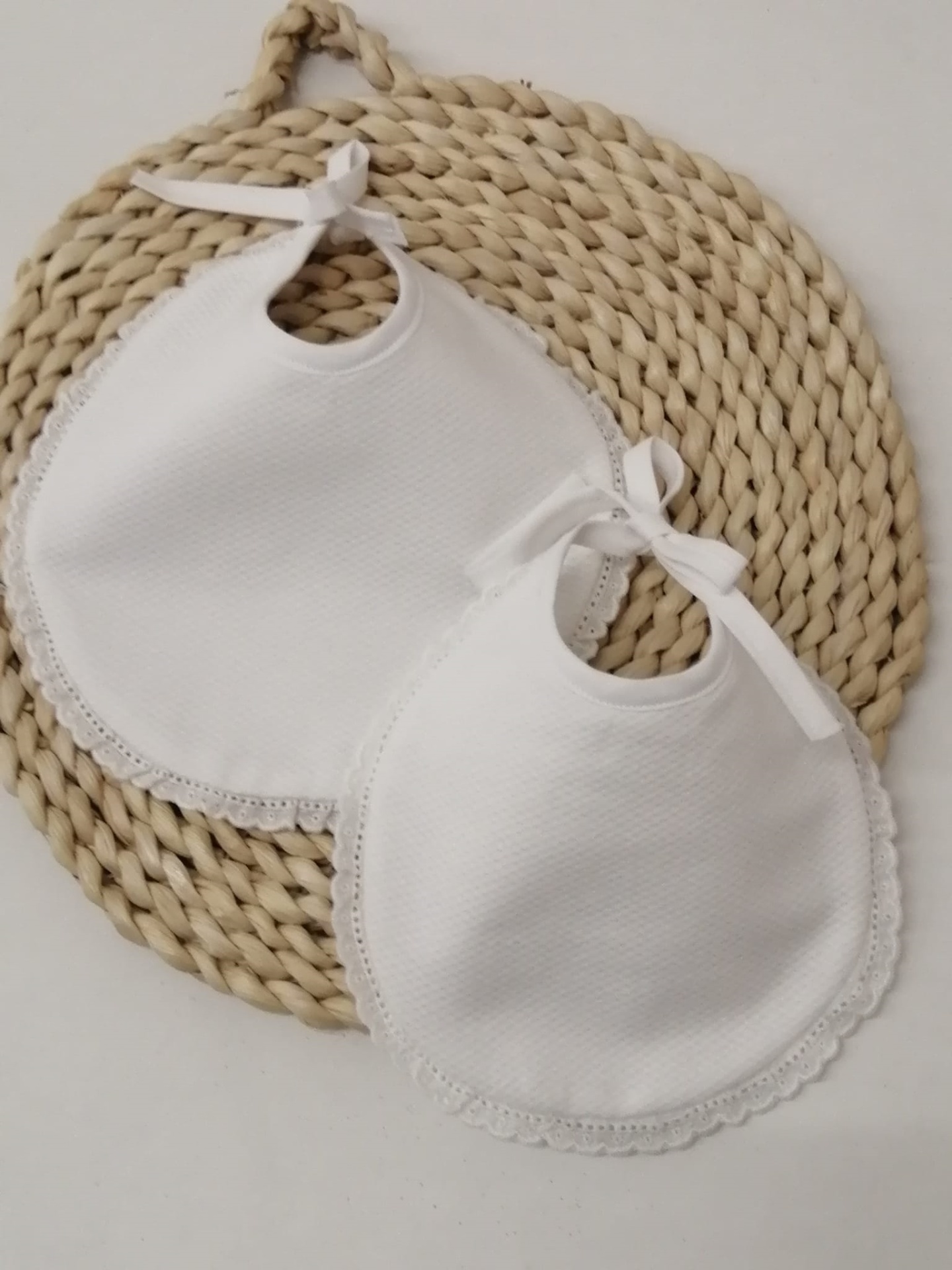 BABETE PIQUET 8,50 € Desconto de %. Partilhar TAMANHO GRANDE PEQUENO Comprar Contactar Babete em piquet com bordado inglês . Interior impermeável Tamanho Grande - + 6 meses Tamanho Pequeno - Zero a 6 meses