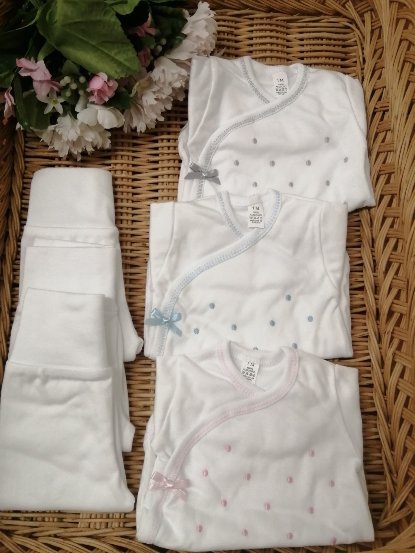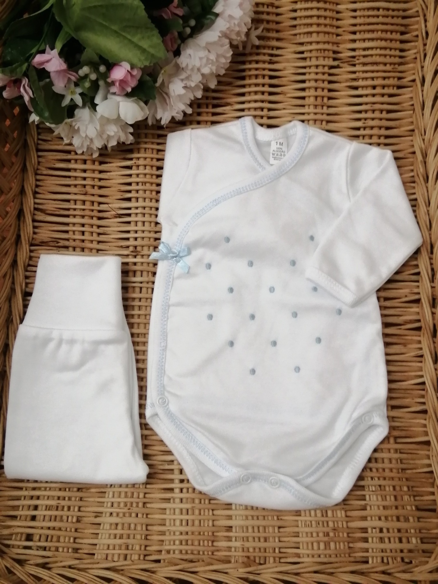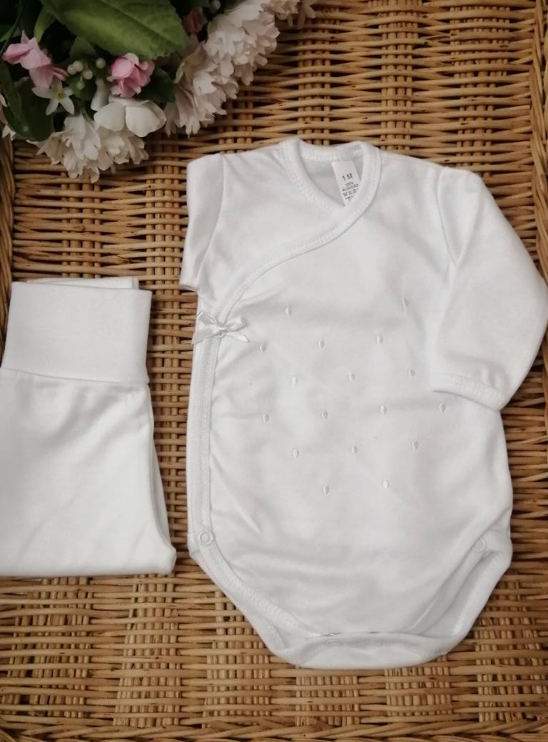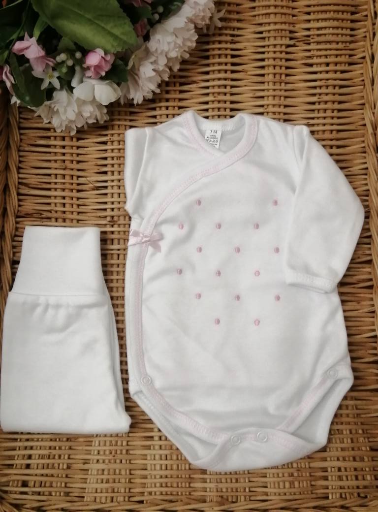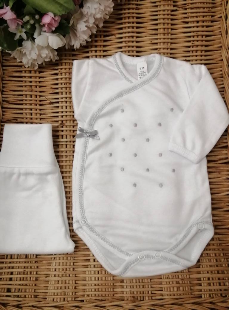 BODY BOLINHAS + CALÇA 9,50 € Desconto de %. Partilhar COR BRANCO COM ROSA BRANCO COM CINZA BRANCO COM AZUL BRANCO COM BRANCO PÉROLA COM PÉROLA Comprar Contactar Body de trespasse com bolinhas bordadas e calça com pé . Com carda. 100% Algodão TAMANHO - 1 MÊS