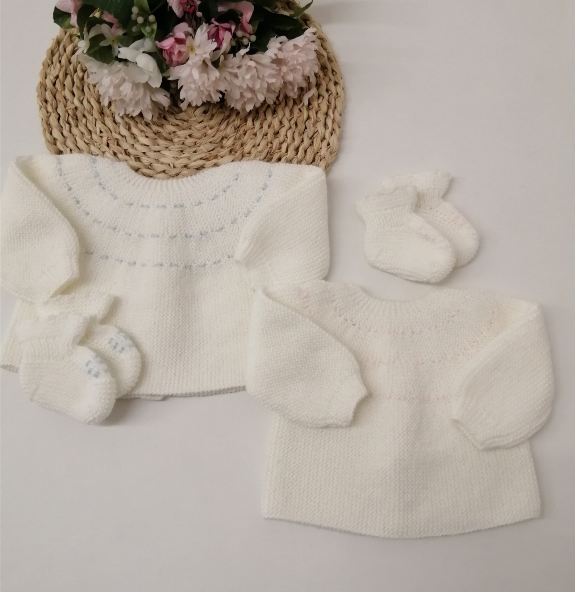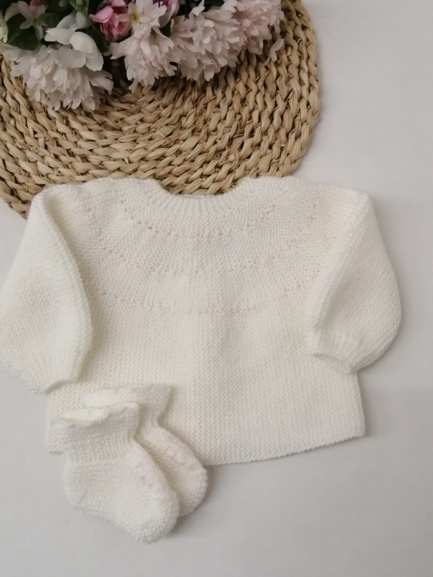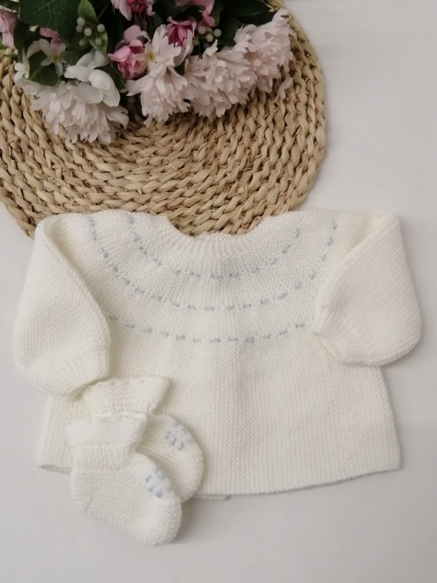 CASACO BRANCO BOLINHAS + BOTAS 32,00 € Desconto de %. Partilhar COR BRANCO COM ROSA BRANCO COM AZUL Comprar Contactar Conjunto casaco e botinhas com bolinhas bordadas. 70% Acrilico / 30% Poliamida - Fio anti-alérgico Tamanho único - Zero a 3 meses