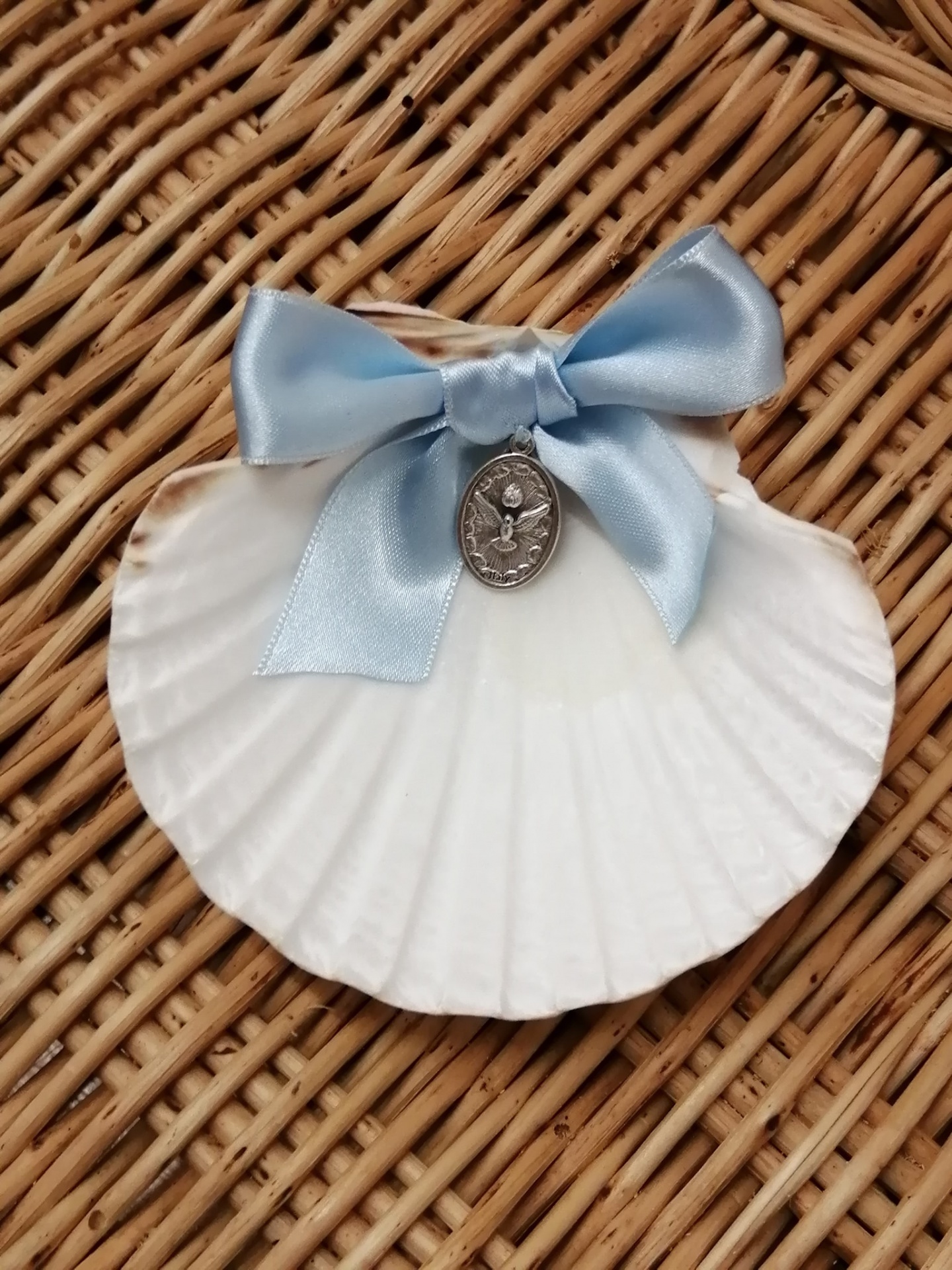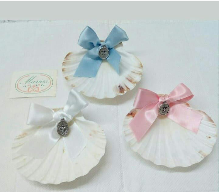 CONCHA BATIZADO 10,00 € Desconto de %. Partilhar COR ROSA AZUL BRANCO Comprar Contactar Concha de Batismo com laço e medalha ( Espirito Santo )