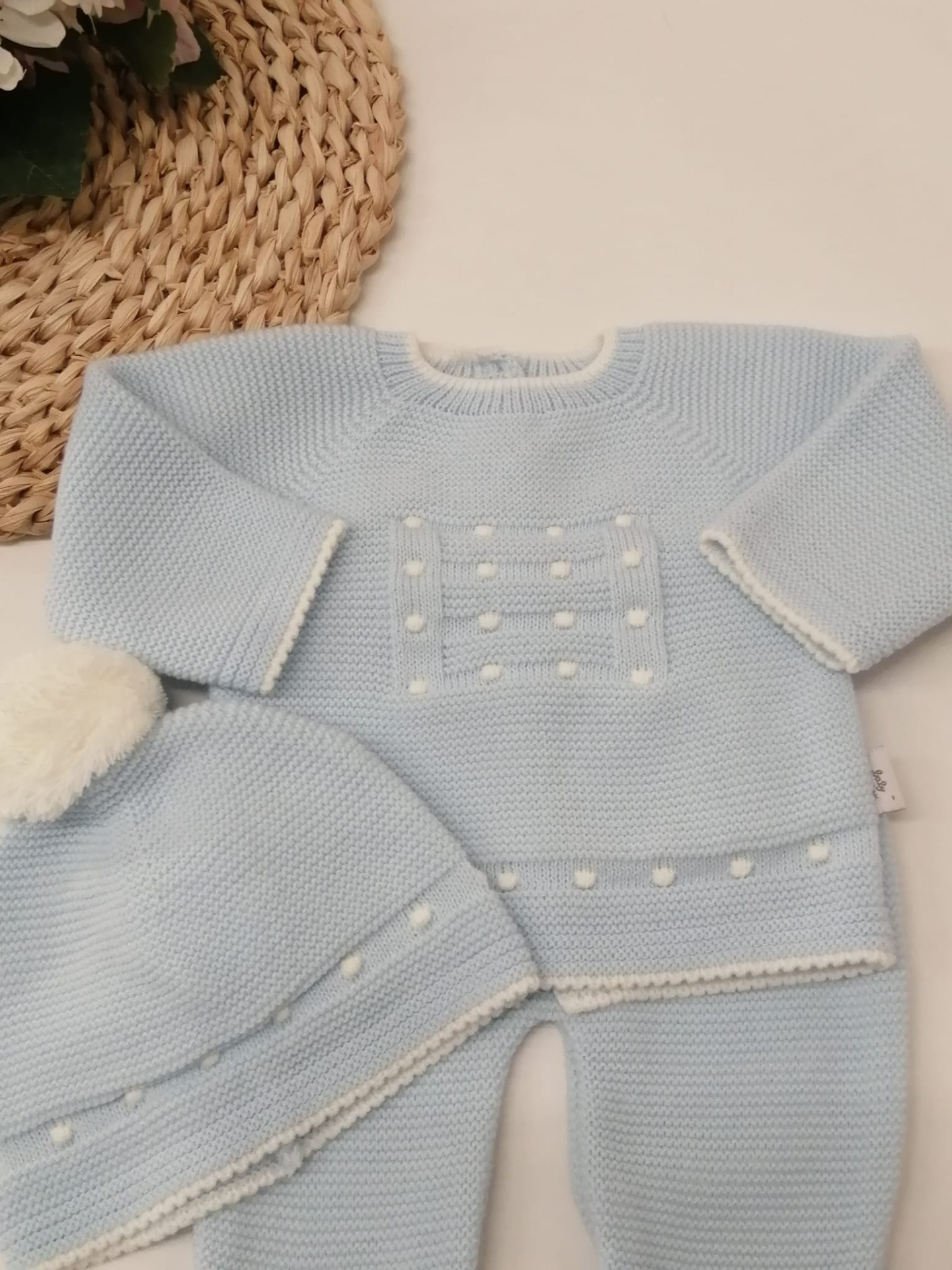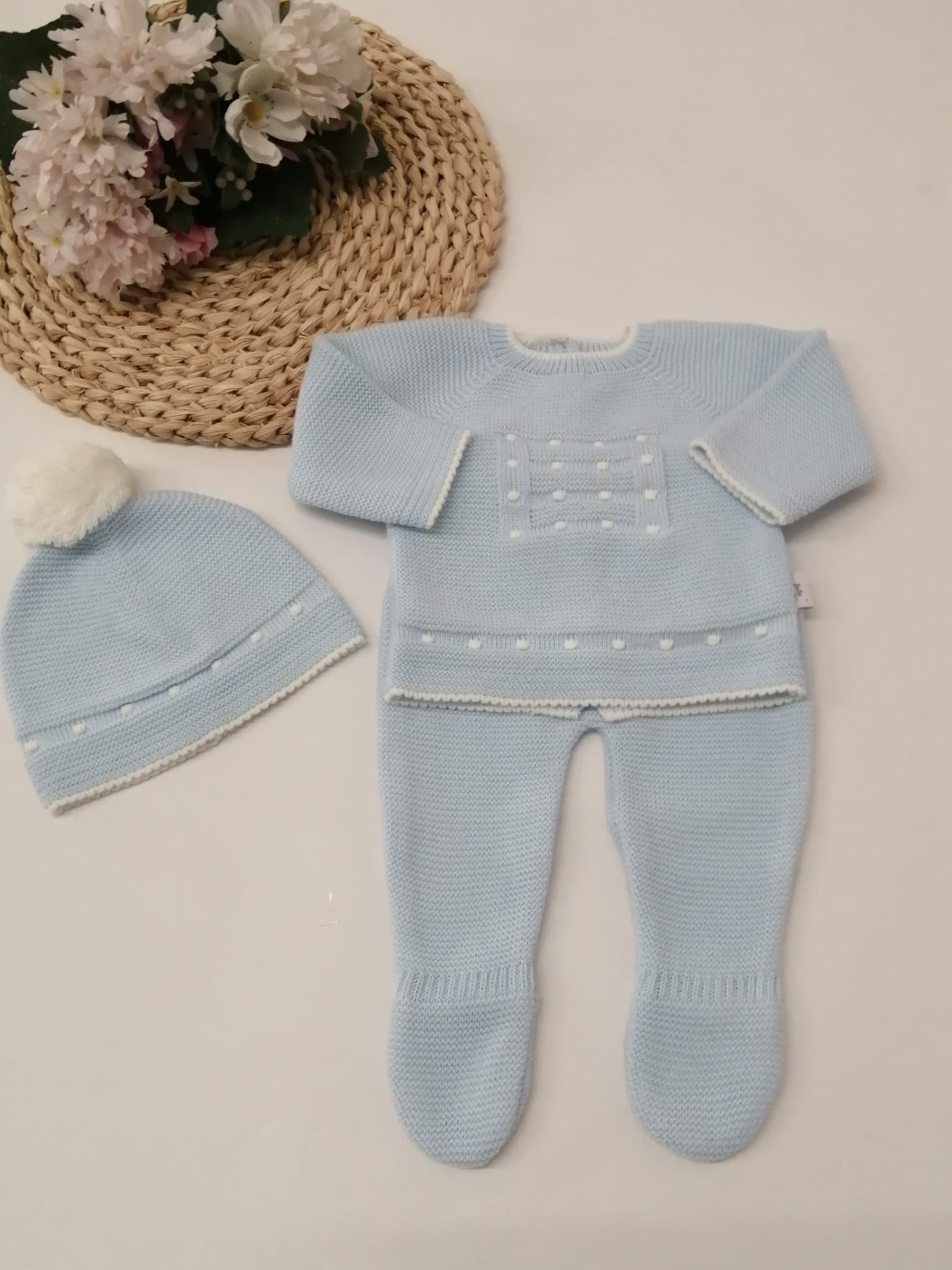 CONJUNTO MALHA BOLINHAS 24,00 € Desconto de %. Partilhar Comprar Contactar Conjunto malha - 3 Peças Calça com pé , camisola e gorro 100% Acrilico TAMANHO - 1 MÊS