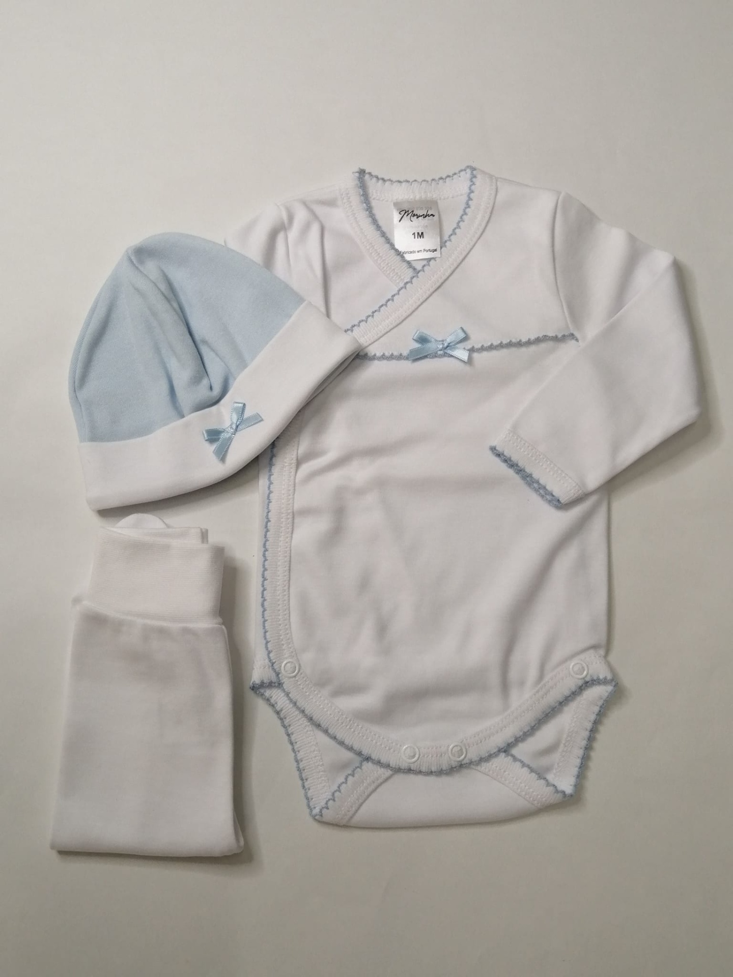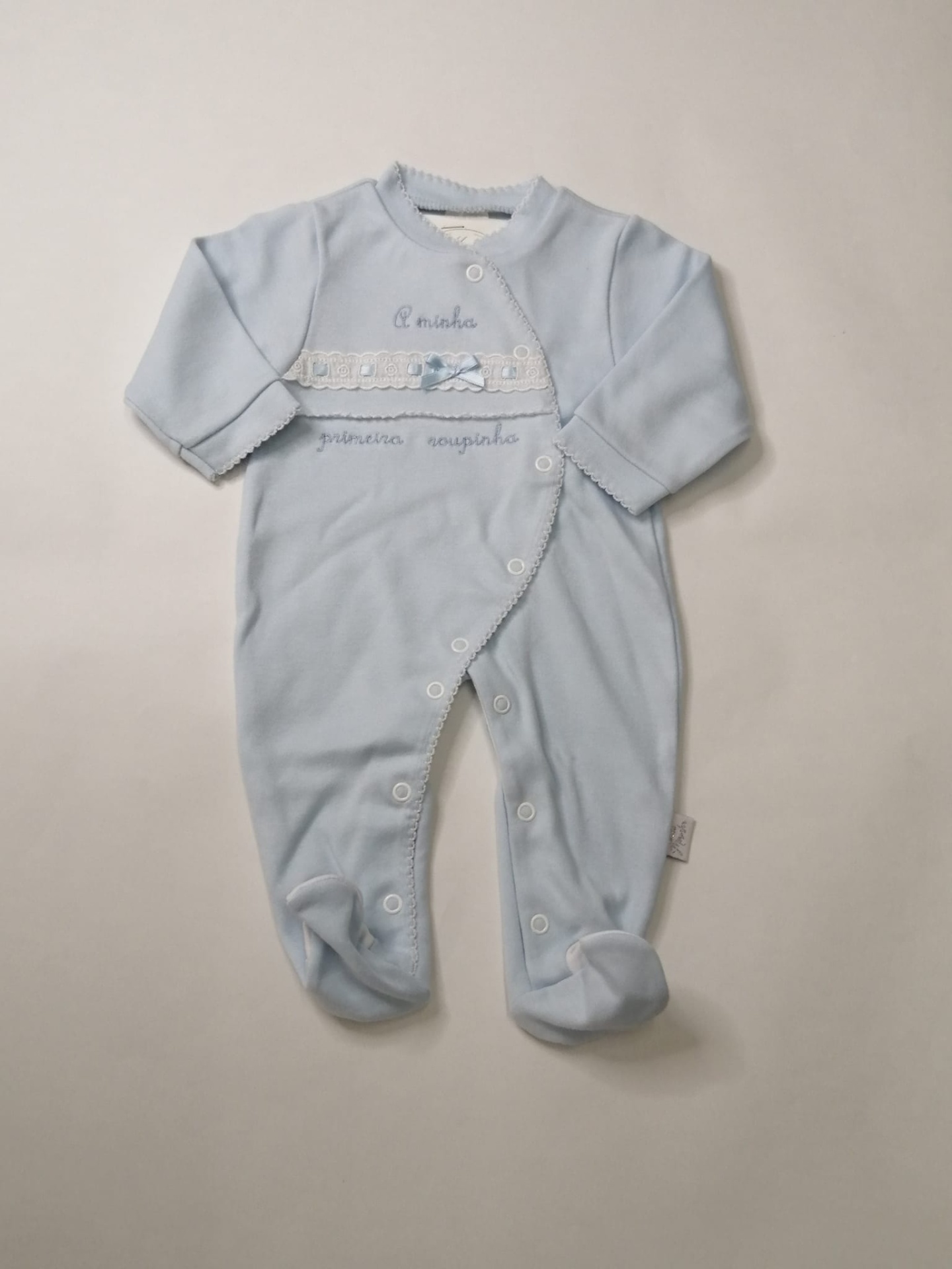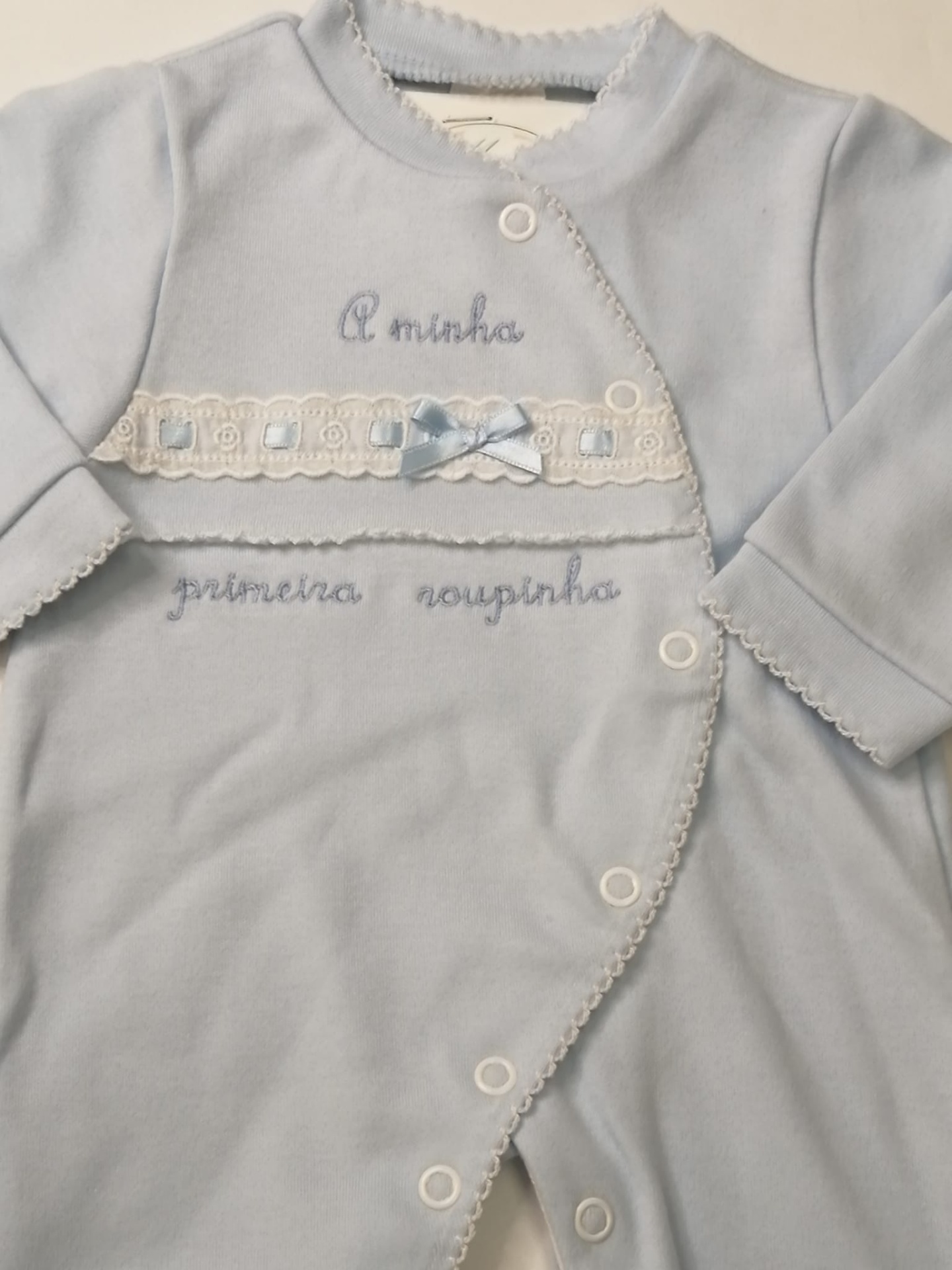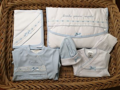 CONJUNTO PRIMEIRA ROUPINHA 38,00 € Desconto de %. Partilhar COR AZUL Comprar Contactar Conjunto " A minha primeira roupinha " Bolsa maternidade , babygrow , body trespasse , calça com pé , gorro e fralda malha . 100% Algodão 6 peças - 1 Mês Tags Babygrow bebéPrimeira roupinha Características