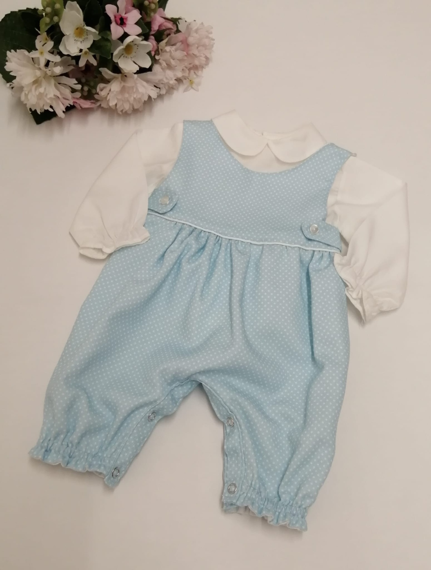 CUEIRO CALÇA FUSTÃO PiNTA 28,50 € Desconto de %. Partilhar O produto encontra-se sem stock. Cueiro calça em fustão azul pinta branca . Camisa vendida separadamente . 100% Algodão Tamanho único - zero a 3 meses