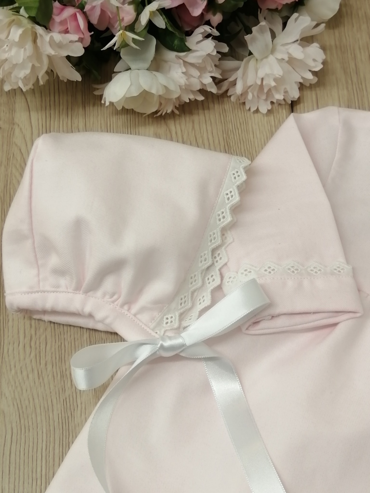 CUEIRO CHAMBRE COM TOUCA 37,00 € Desconto de %. Partilhar COR ROSA Comprar Contactar Cueiro chambre em vaiela lisa com bordado inglês . Touca a condizer . 100% Algodão TAMANHO ÚNCO - ZERO A 3 MESES