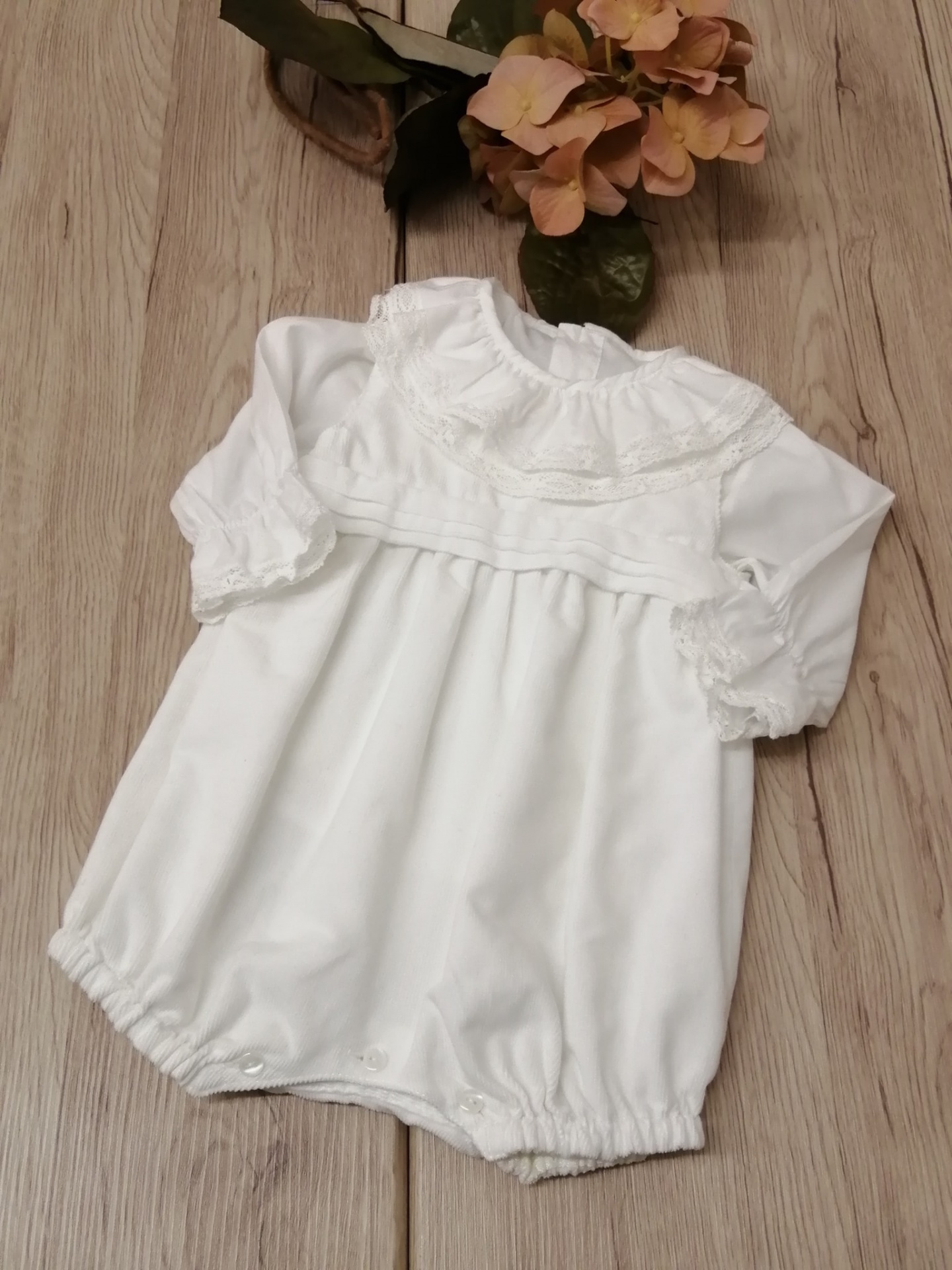 CONJUNTO FOFO E CAMISA RENDAS 52,00 € Desconto de %. Partilhar Comprar Contactar Descrição Fofo em veludo cotelet branco com pregas . Camisa cambraia com gola folho e rendas 100% Algodão TAMANHO - 6 MESES Contorno peito - 48 cm / Ombro ao gancho - 38 cm MEDIDAS