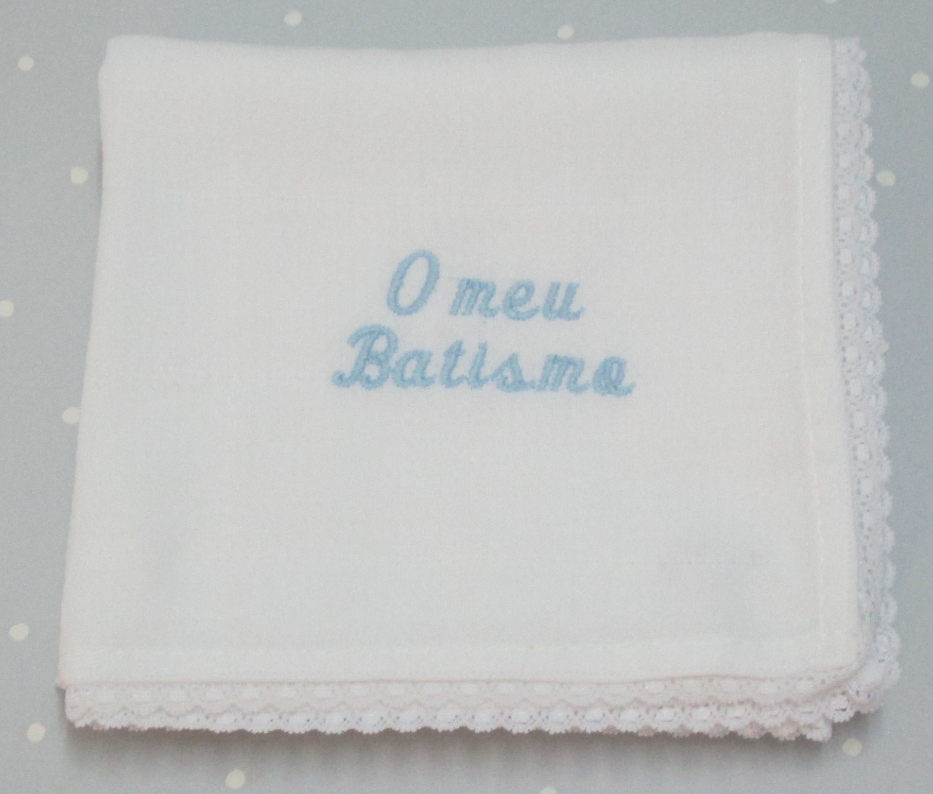 FRALDA " O meu Batismo " 8,50 € Desconto de %. Partilhar COR BORDADO AZUL ROSA PÉROLA Comprar Contactar Fralda " O meu Batismo " 100 % Algodão Medida - 70 x 70 cm