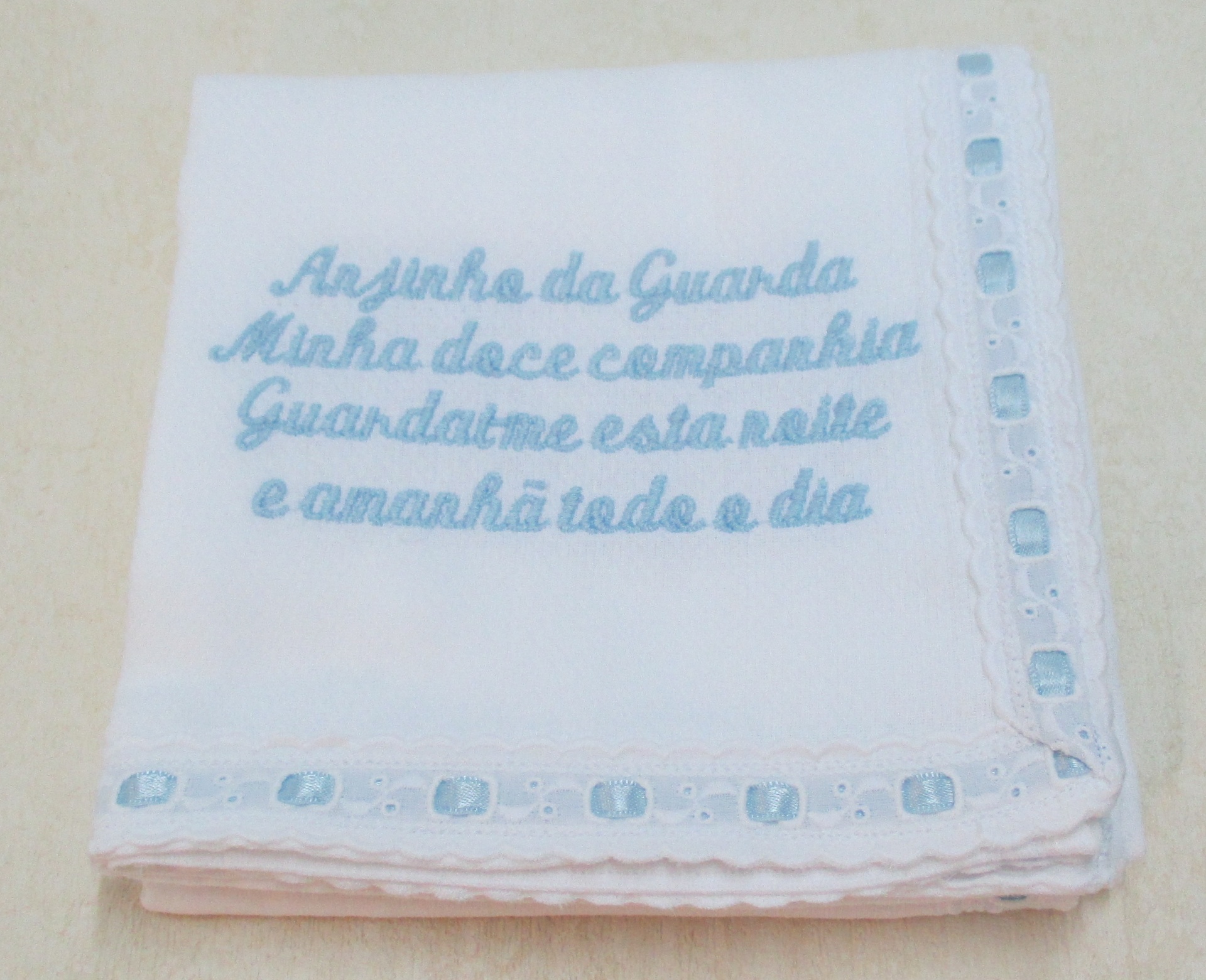 FRALDA ORAÇÃO 14,50 € Desconto de %. Partilhar COR BORDADO AZUL ROSA Comprar Contactar Fralda com oração bordada e bordado inglês. 100% Algodão Medida - 70 x 70 cm