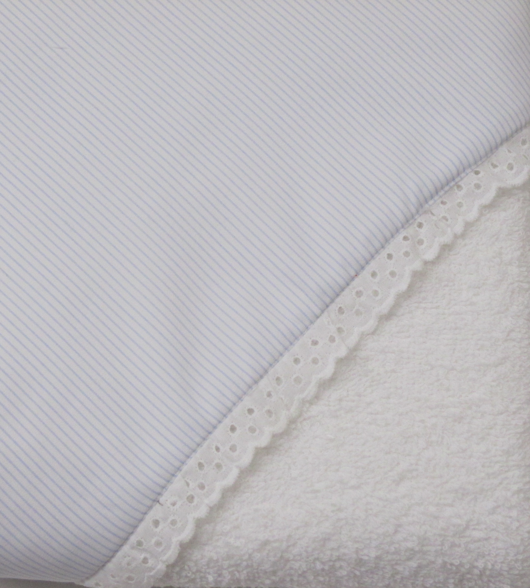 LENÇOL BANHO RISQUINHAS 24,00 € Desconto de %. Partilhar COR Risquinhas Azuis Risquinhas Rosa Comprar Contactar Lençol banho com capuz , em tecido de risquinhas e bordado inglês . Medidas - 80x80 Cm 100% Algodão