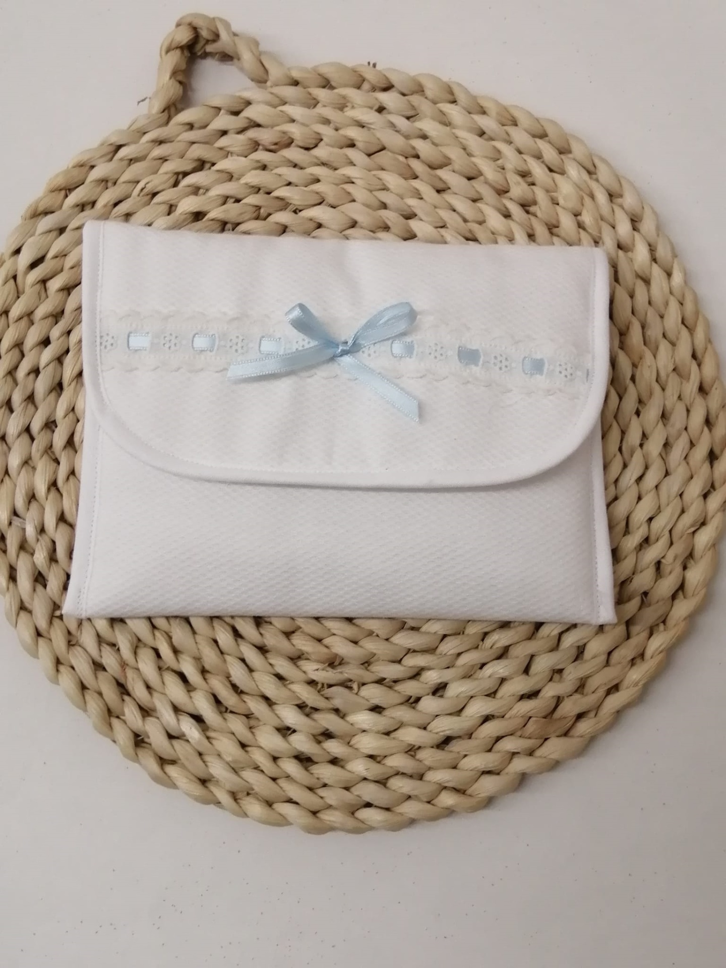 PORTA DOCUMENTOS 10,00 € Desconto de %. Partilhar COR FITA AZUL FITA ROSA Comprar Contactar Porta documentos em piquet , bordado inglês e fita cetim . Tamanho - 16x20 cm 100% Algodão