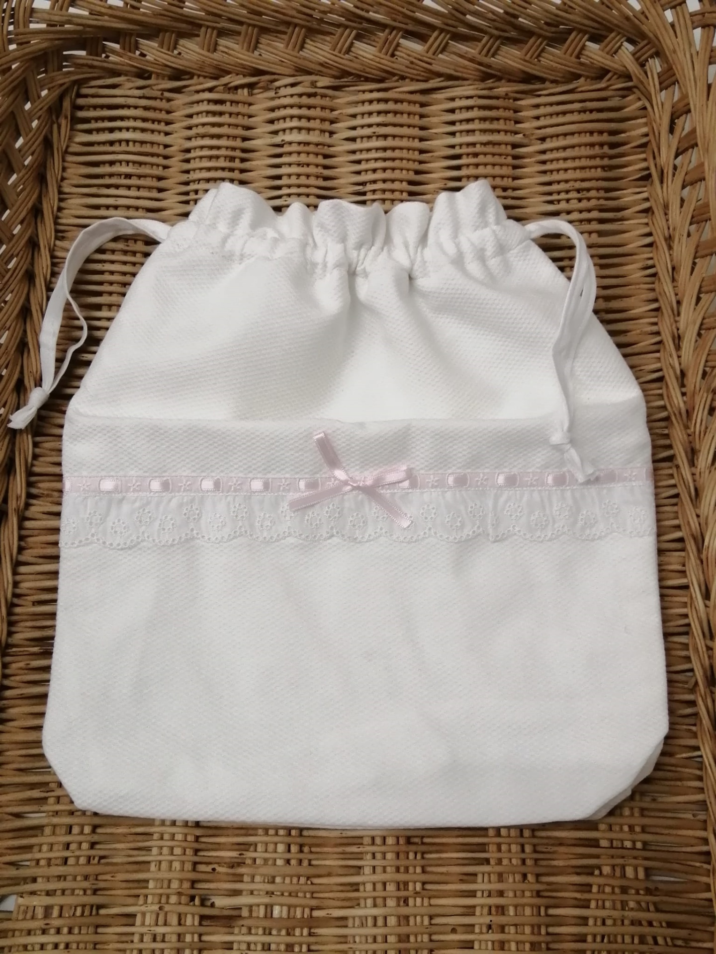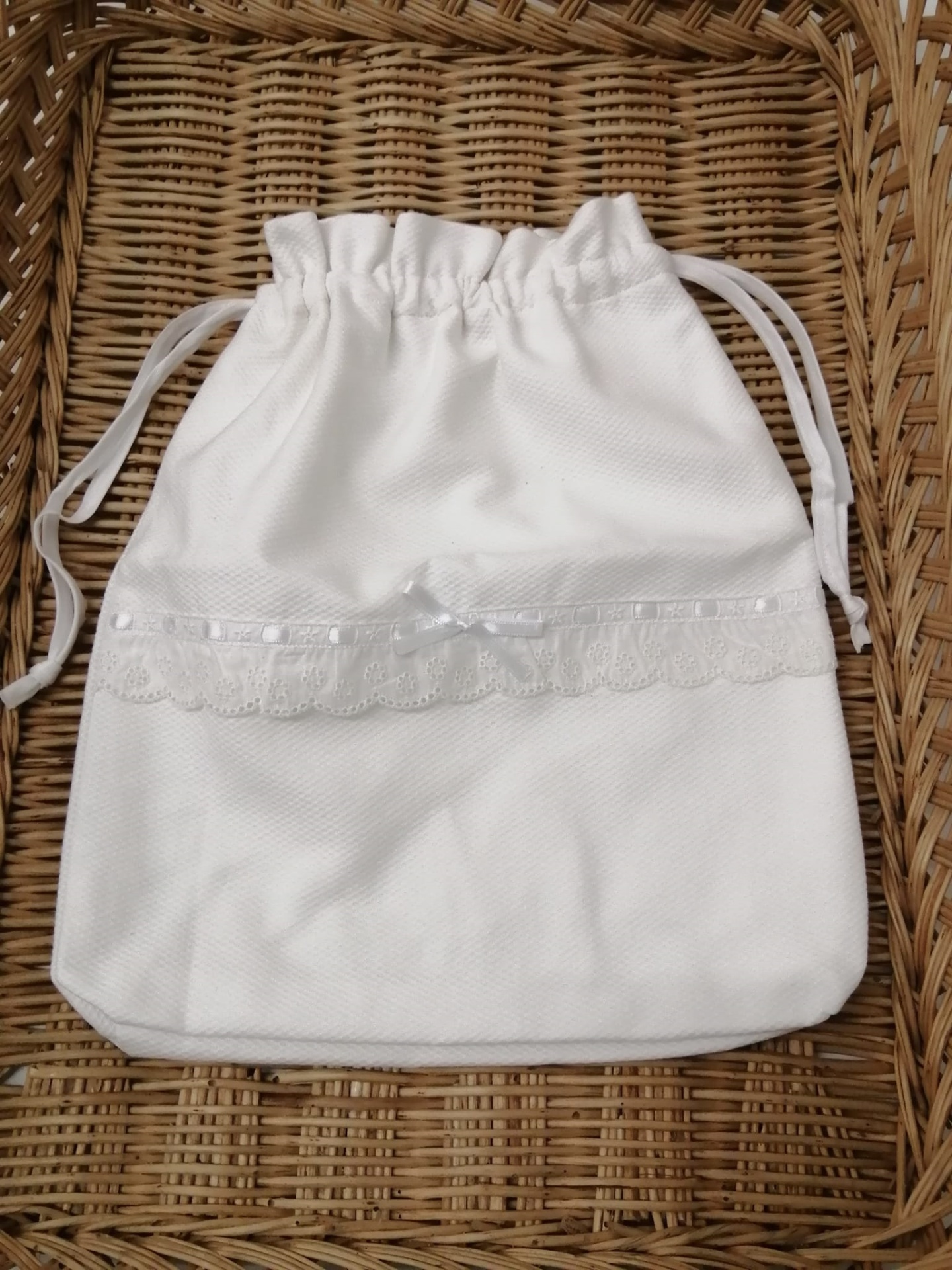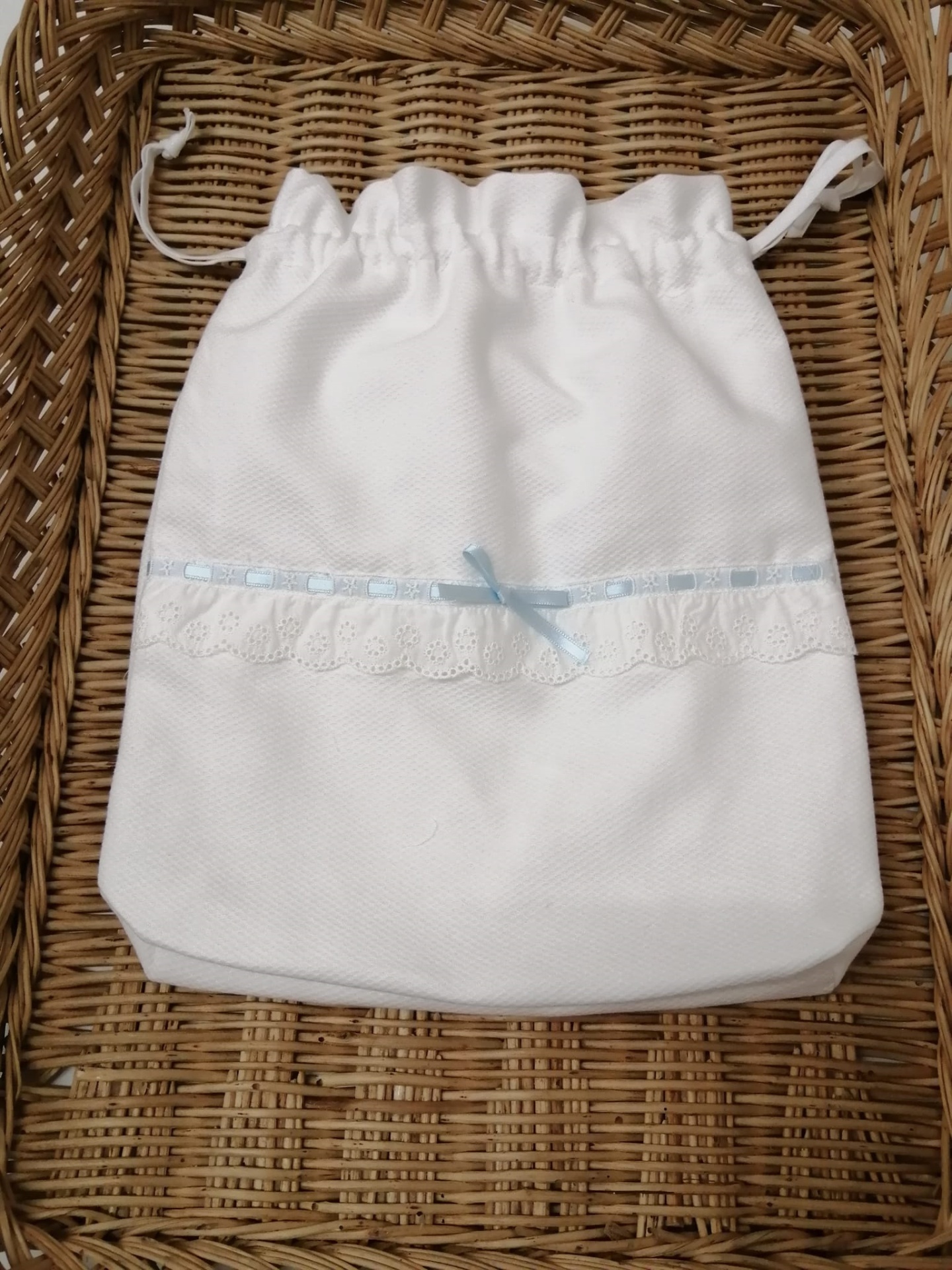 SACO ROUPA SUJA 12,00 € Desconto de %. Partilhar COR FITA AZUL FITA BRANCA FITA ROSA Comprar Contactar Saco de roupa suja em piquet com bordado inglês e fita de cetim . Interior em tecido plastificado. 100% Algodão