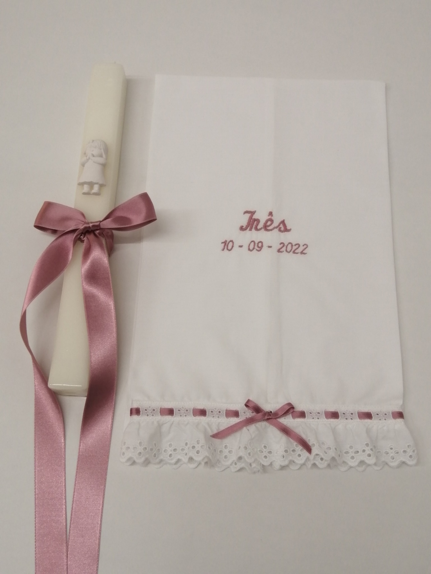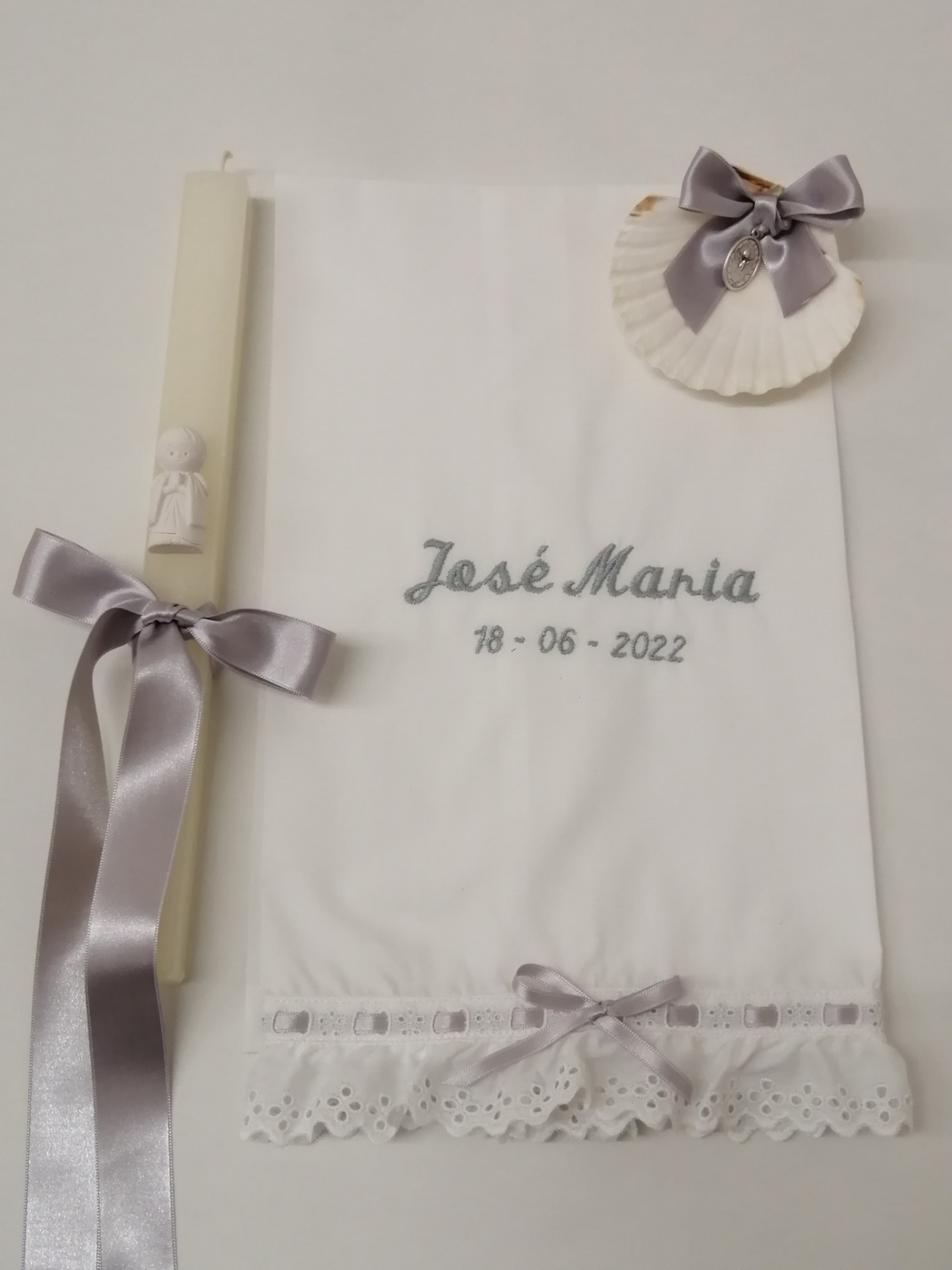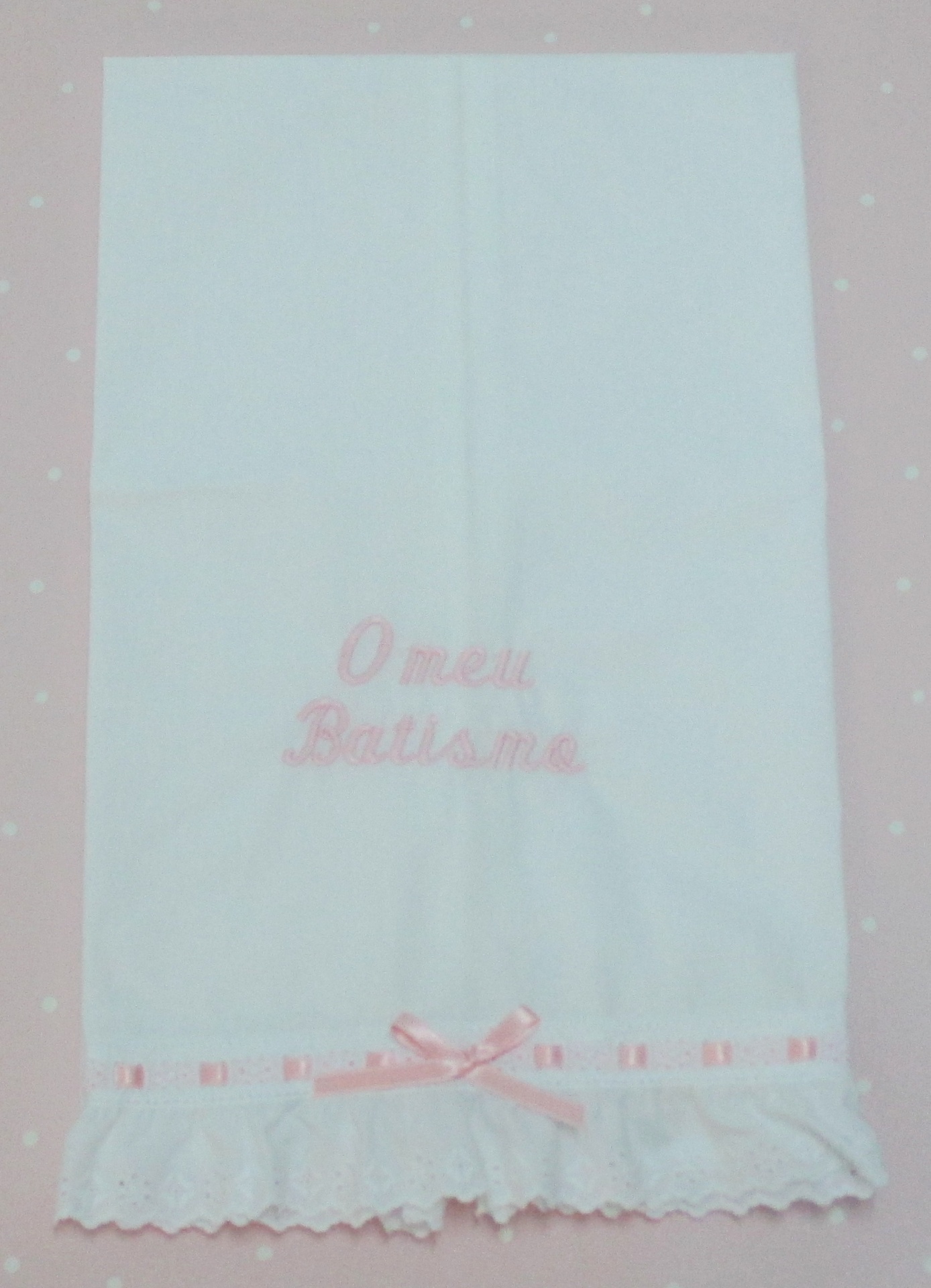 TOALHA BATIZADO 14,50 € Desconto de %. Partilhar COR BORDADO ROSA AZUL PÉROLA AZUL ESCURO CINZA ROSA VELHO AMARELO VERDE ÁGUA Comprar Contactar Toalha Batizado . Tamanho - 40 x 70 cm 100% Algodão POR ENCOMENDA - 10 DIAS OPÇÃO 1 - NOME + DATA OPÇÃO 2 - O meu Batismo + NOME + DATA OPCÃO 3 - O meu Batismo ( Enviar p.f na confirmação da encomenda - opção pretendida e nome + data )