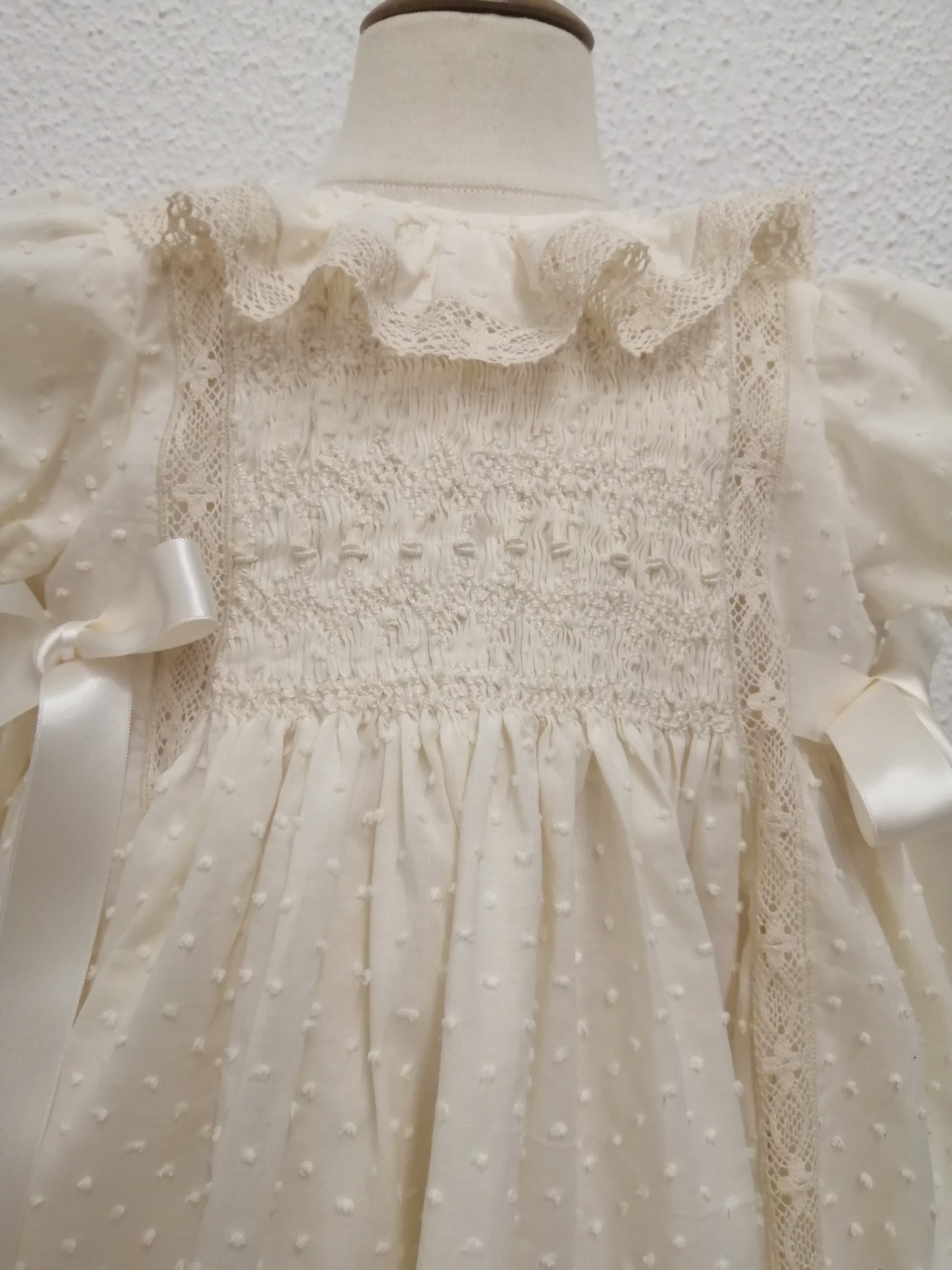 VBC195PR - VESTIDO BATIZADO PÉROLA SMOCKS 110,00 € Desconto de %. Partilhar MANGA MANGA CURTA MANGA COMPRIDA TAMANHO 1 ANO 2 ANOS 3 ANOS Comprar Contactar Vestido batizado curto , em tecido plumeti pérola com bordado smocks 100% Algiodão MEDIDAS 1 ANO - CONTORNO PEITO - 52 CM / MANGA COMPRIDA - 27 CM / ALTURA TOTAL - 48 CM 2 ANOS - CONTORNO PEITO - 56 CM / MANGA COMPRIDA - 29 CM / ALTURA TOTAL - 54 CM 3 ANOS - CONTORNO PEITO - 60 CM / MANGA COMPRIDA - 32 CM / ALTURA TOTAL - 58 CM