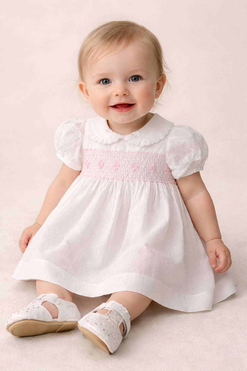 VESTIDO BORDADO INGLÊS 50,00 € Desconto de %. Partilhar TAMANHO BRANCO - 6 MESES BRANCO - 1 ANO ROSA - 6 MESES ROSA - 1 ANO Comprar Contactar Descrição Vestido de bordado inglês com bordado de smocks. 100% Algodão CONSULTAR TABELA DE MEDIDAS MEDIDAS 6 MESES Contorno peito - 46 cm / Altura total - 43 cm 1 ANO Contorno peito - 48 cm / Altura total - 45 cm
