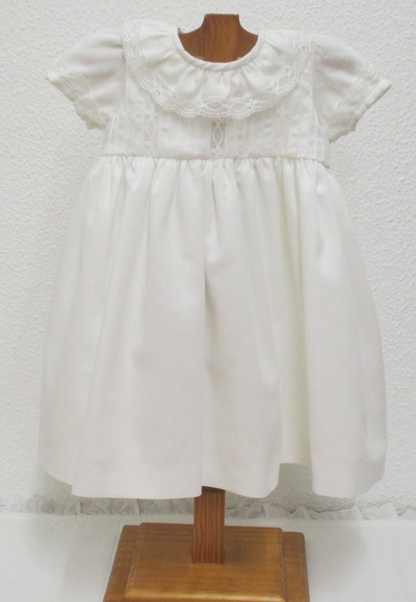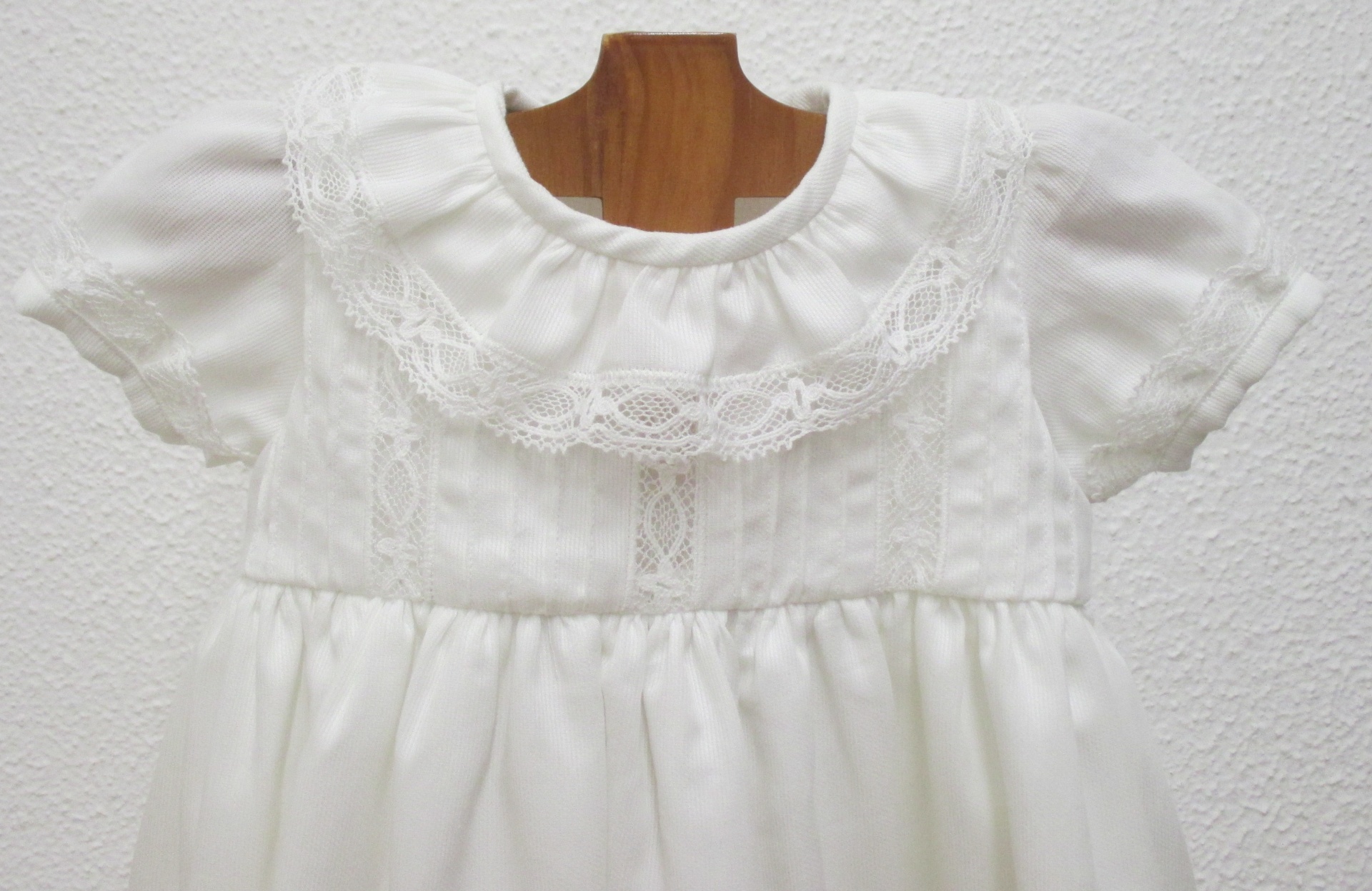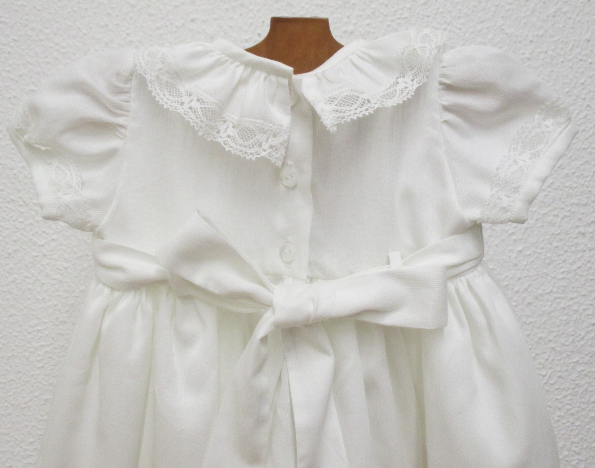 VESTIDO BRANCO RENDAS 46,00 € Desconto de %. Partilhar TAMANHO 6 MESES - DISPONIVEL 1 ANO - DISPONIVEL 2 ANOS - POR ENCOMENDA 3 ANOS - POR ENCOMENDA Comprar Contactar Vestido Renda Vestido em fustão branco , com renda aplicada e nervuras . 100% Algodão ** POR ENCOMENDA - 15 DIAS ** 6 Meses - Contorno peito - 48 cm / Altura total - 45 cm 1 Ano - Contorno peito - 52 cm / Altura total - 48 cm 2 Anos - Contorno peito - 56 cm / Altura total - 54 cm 3 Anos - Contorno peito - 60 cm / Altura total - 58 cm
